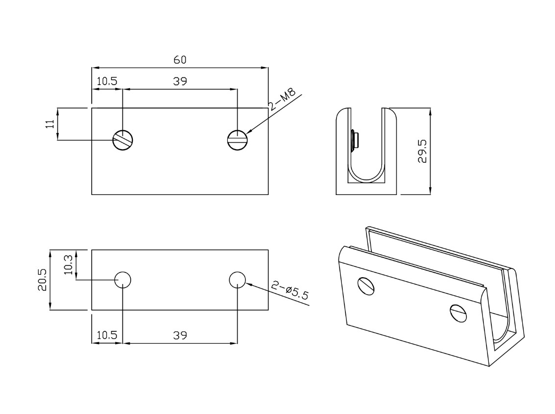 | Designed to suit 8mm-10mm thick glass panels |